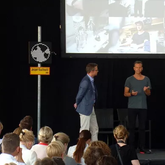 Jesper Kouthoofd från high-techföretaget Teenage Engineering hade designat årets elektroniska version av "vägmärket för Industriområdet" som premiärvisades för ministern och publiken i samband med invigningen.